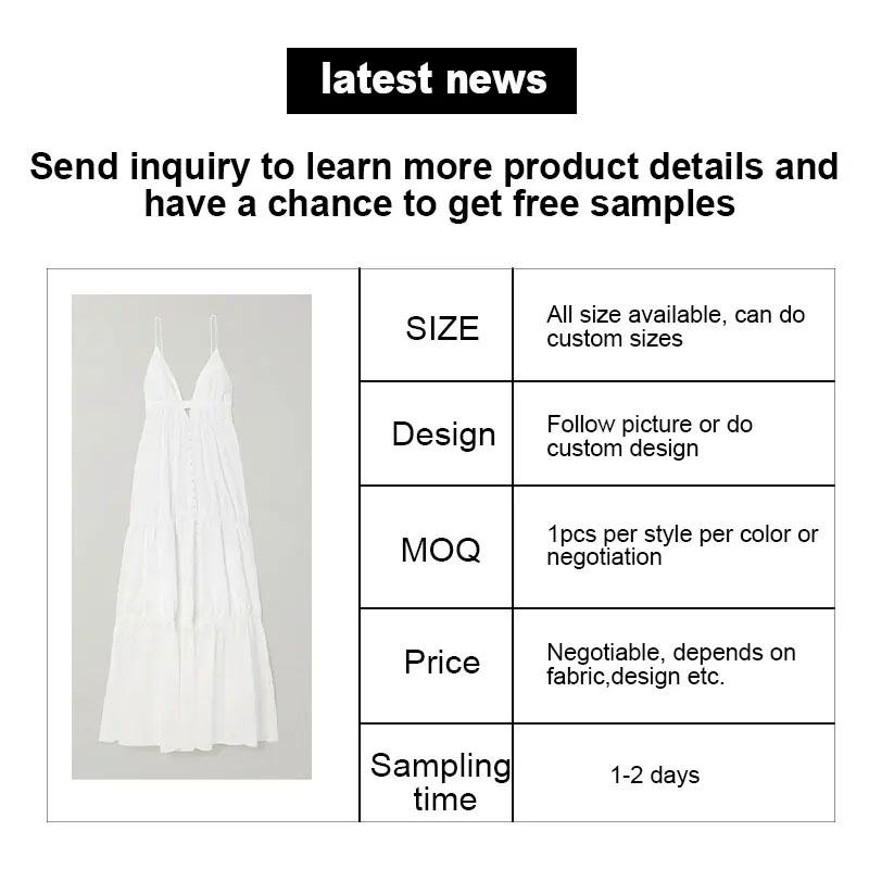 Diseinu jasangarria eta transpiragarria: geruzadun V-lepoko bizkarrik gabeko soineko dotore hau %100 lihoz egina dago, eguneroko bizitzarako ezin hobea den jantzi transpiragarri eta iraunkorra bermatuz. Estatiko eta zimurren aurkako ezaugarriek aukera praktikoa bihurtzen dute edozein emakumerentzat. Pertsonalizazio aukerak: hainbat kolore eta tamaina pertsonalizagarritan eskuragarri, soineko hau zure estilo eta hobespen berezietara egokitu daiteke. Kalitate handiko materialak: 100 gramoko ehunarekin, soineko hau kalitate handiko lihoz egina dago, iraunkorra eta erosoa. denbora, lagin bat eskatzea eta soinekoa pertsonalki ikustea eskaera handiagoa egin aurretik.Prezio lehiakorrak: Zuzeneko fabrika eta merkataritza enpresa gisa, prezio lehiakorrak eta OEM/ODM zerbitzuak eskaintzen ditugu, aukera erakargarria bihurtuz ontziratuan erostea nahi duten enpresa eta partikularrentzat.